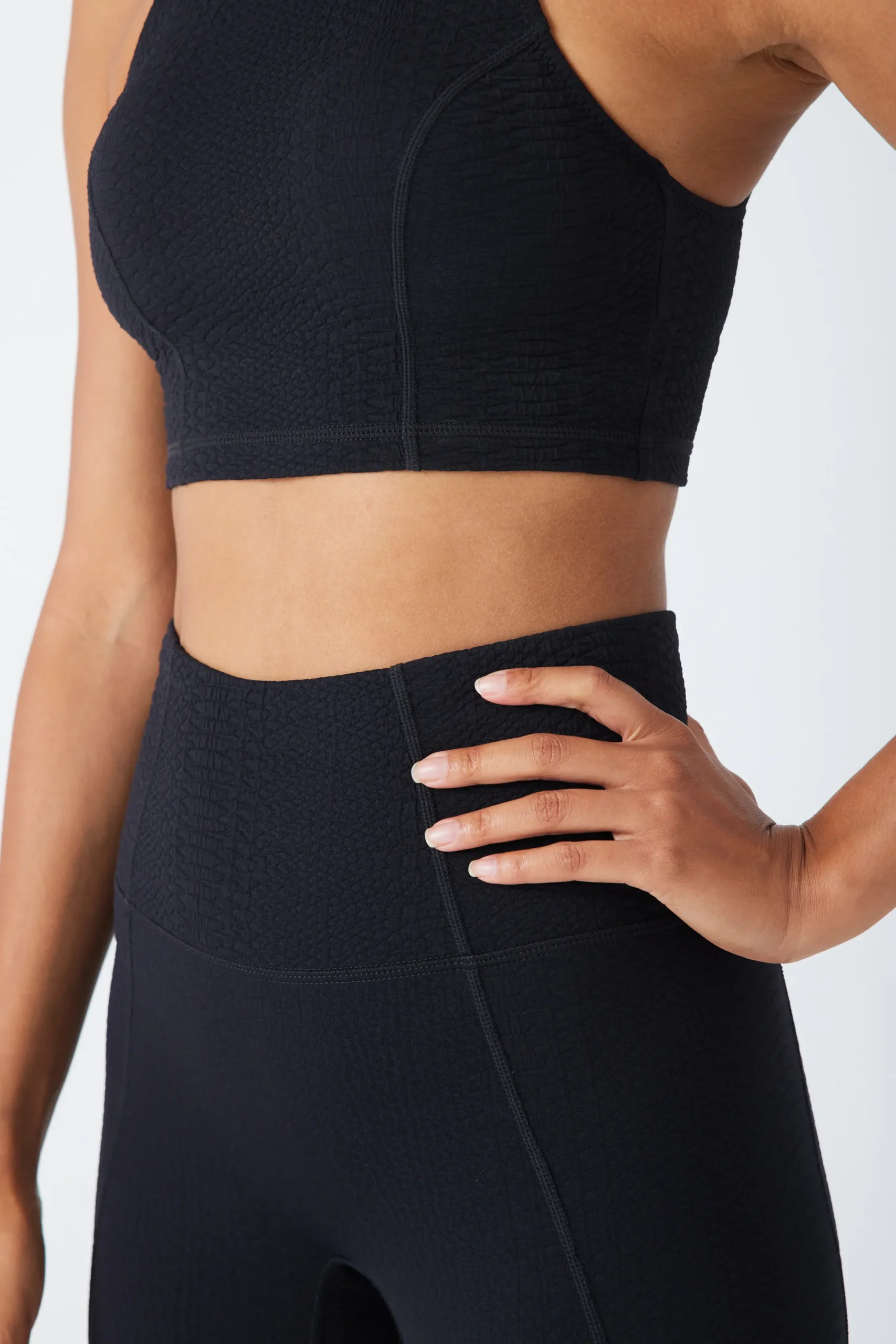 The Devon Top constructed from our gorgeous textured faux snake. Medium support with a hidden shelf bra. Scoop back and high cut front. Matches beautifully with the Ava legging then throw on the Isabella pullover to complete the look.