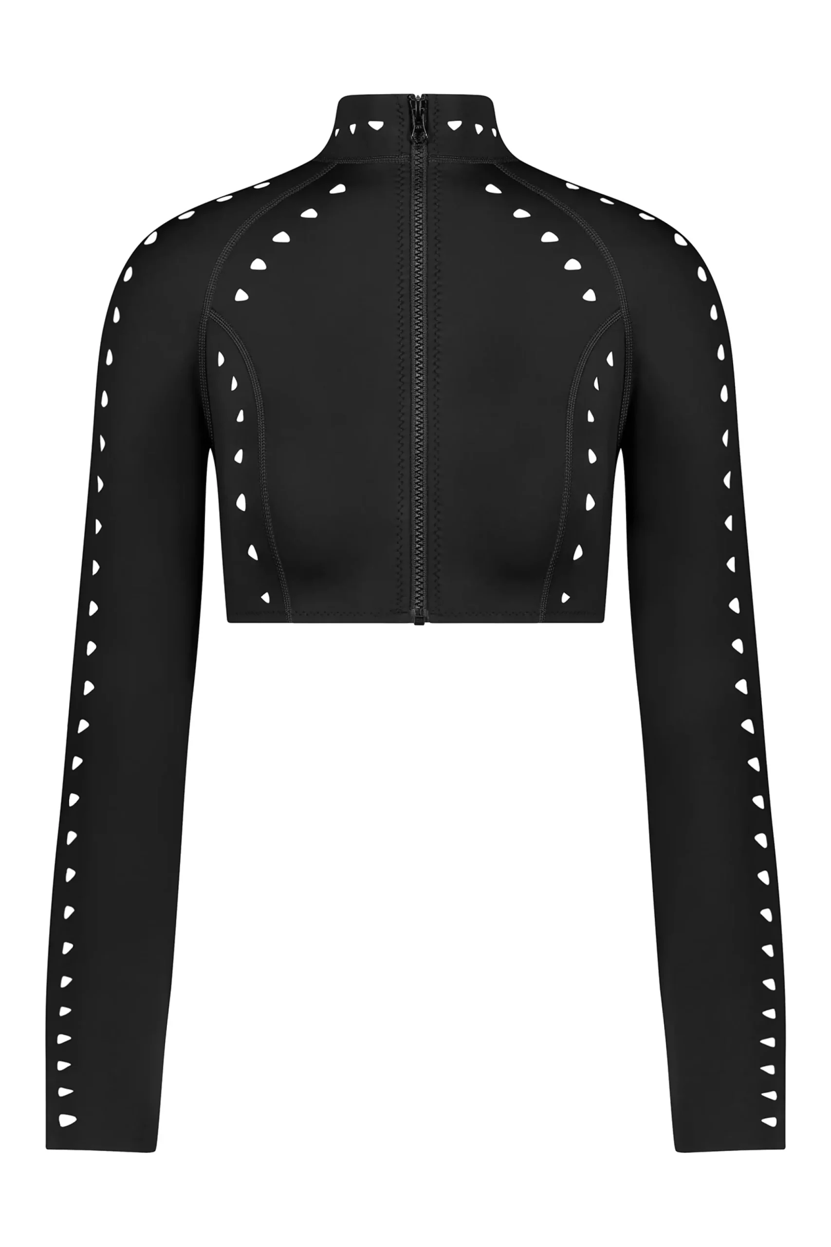 The Morgan Surf Jacket is a striking addition to our Scuba Collection. Tailored to perfection in our featured silky, thin scuba fabric. Its peekaboo geometric cutout design and below the bust hemline, make it a must-have statement piece. Shown with the Jaclyn Bottom but the perfect piece to wear out on the town with your fav jeans. If you’re between sizes, please size up.