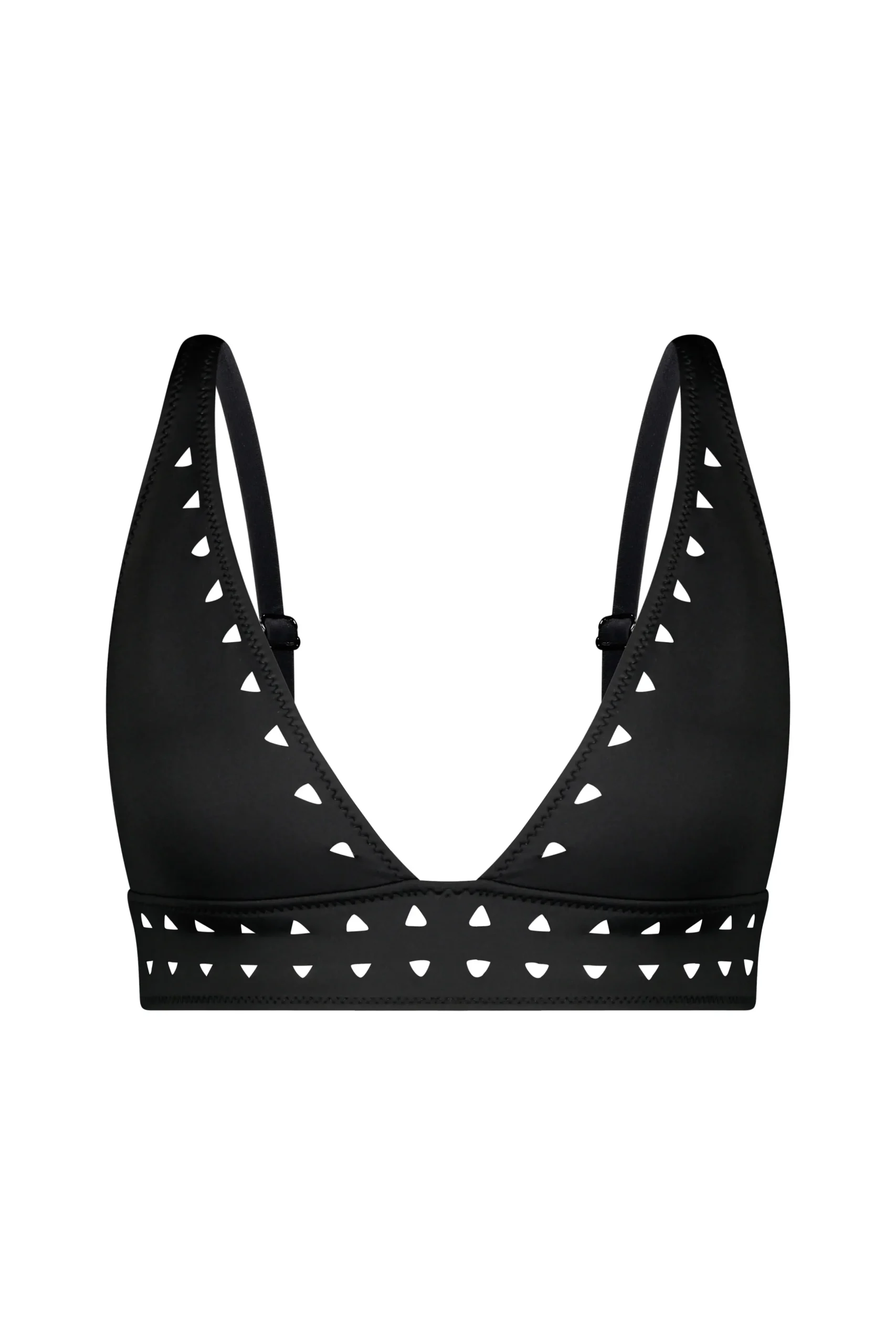 The Angelica Top is the perfect combination of minimal, elegant, and sporty. Featuring triangle cutout details around all the edges, and wide straps for that extra support and coverage when you need it.